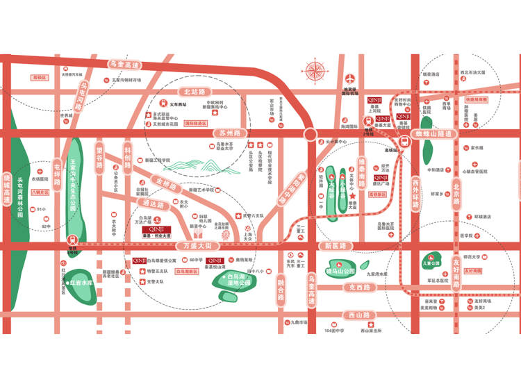 c: 医疗配套:新疆医科大学、友好军区总医院、高铁医院(乌鲁木齐国际医