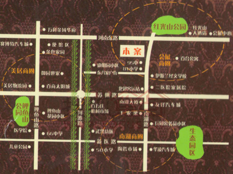 东:世纪花园;南:马德里春天;西:西过境公路;北:木柴厂