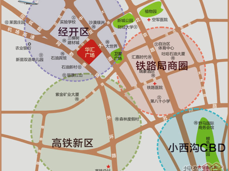 51、153、68、909、66、18、11等,项目南侧乌昌高速,临近地窝堡机场与高铁新区