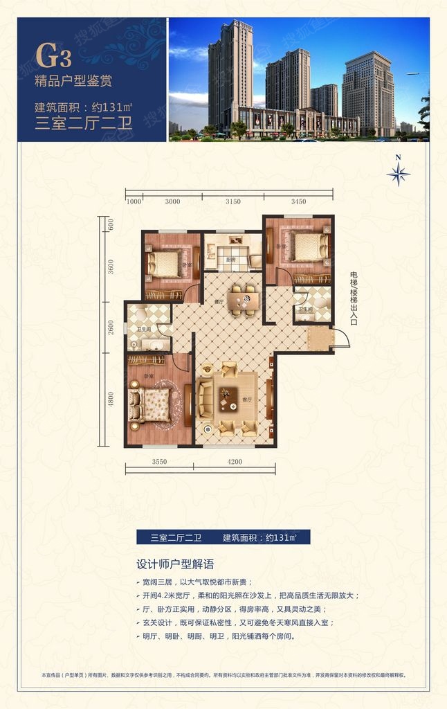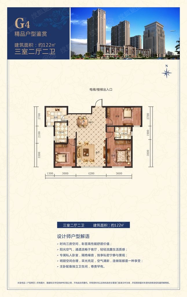 【户型说明】:1号楼是96和106㎡的户型,两个单元,两梯四户,2号楼和4号楼是125和137㎡的户型,3号楼是楼王,是157的户型,两梯两户,双开门刷卡电梯。