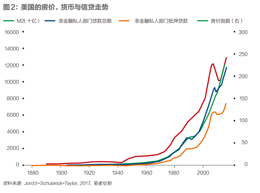 大萧条之后, 特别是上世纪70年代之后,货币与信贷和周期的关系显著弱化, 金融变量——信贷、抵押、杠杆和不动产价格——等成为解释周期的最重要变量。