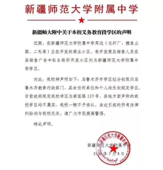 近期,新疆师范大学附属中学就发出了关于本校义务教育段学区的声明。