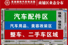 芜湖国购汽贸物流园是一个汽车专业市场项目市场内部所经营的业态都是与汽车相关,包括汽车4S、2S店、二手车市场、汽车配件交易、汽车用品改装等15大业态。配套立体停车楼,可停1128辆,项目共有停车位3756辆。