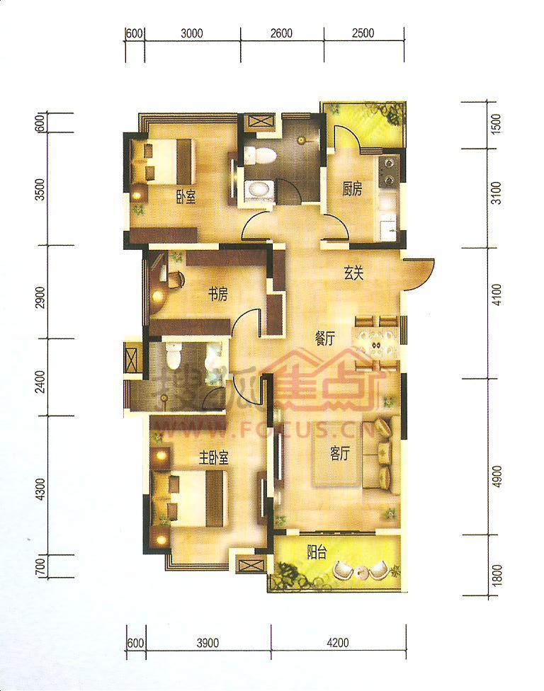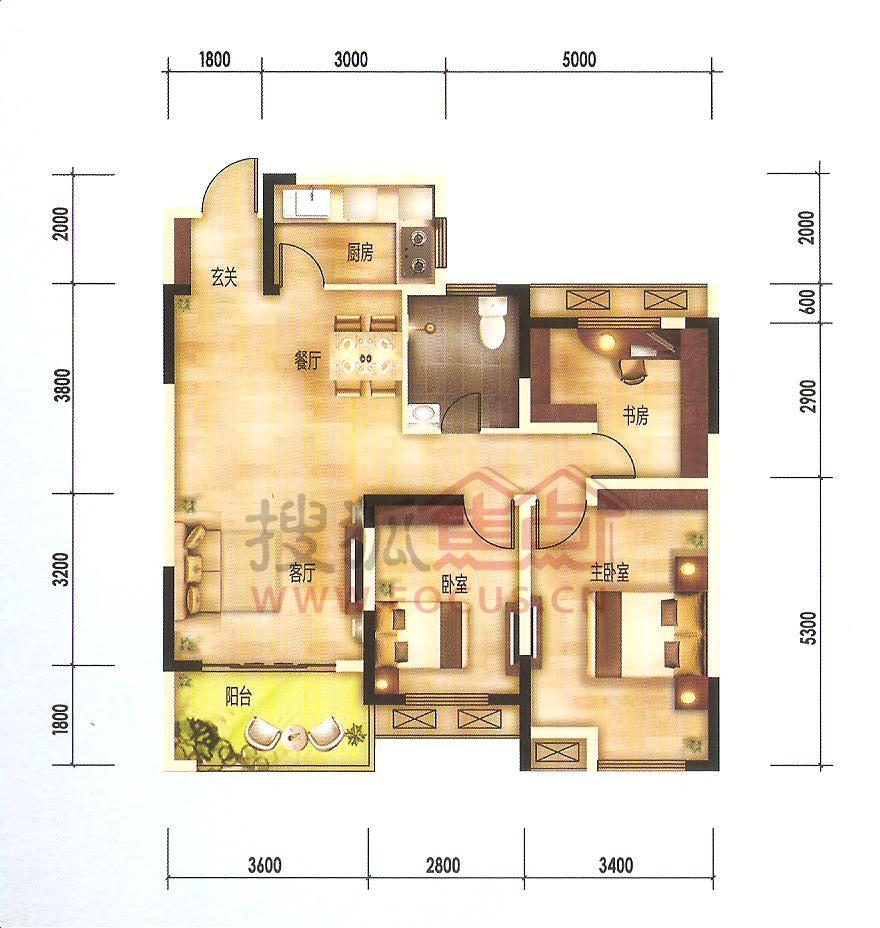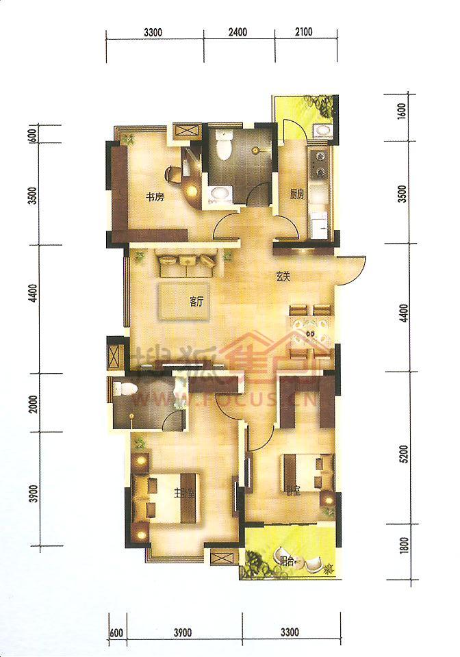 3室2厅2卫-长江湾1号 11#、12# 2-A