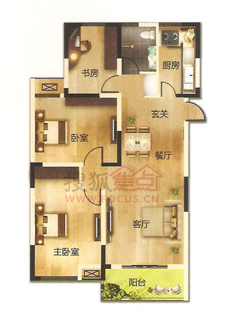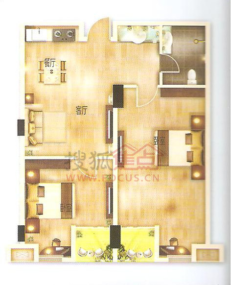 3室2厅1卫-长江湾1号 11#、12# 2-B