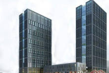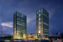 项目首创光合生态建筑,占地2.3万㎡,总建筑面积约11万㎡,由A、B双子座塔楼、一座商业裙楼、智能导航地下车库及生态休闲广场组成。