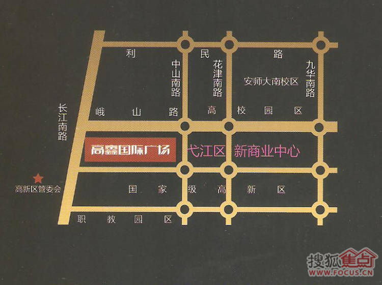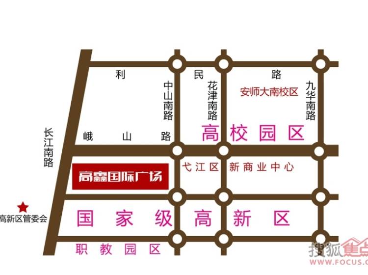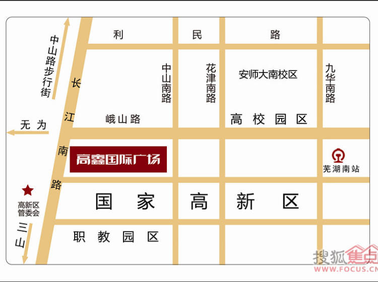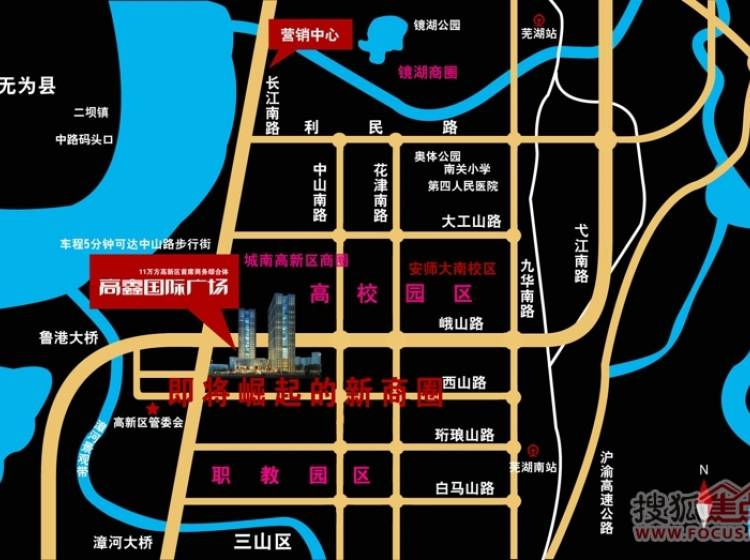 高鑫国际广场由芜湖鑫马置业有限责任公司投资开发,地处芜湖国家高新区核心,北临高校园区、鲁港镇,南接职教园区,东临服务外包产业园区。踞守未来通往芜湖南站、三山区和无为过江隧道的交汇枢纽,5分钟悠闲驱车即达中山路步行街,远离闹市的喧嚣与拥堵,尽享静谧的商务办公环境。
