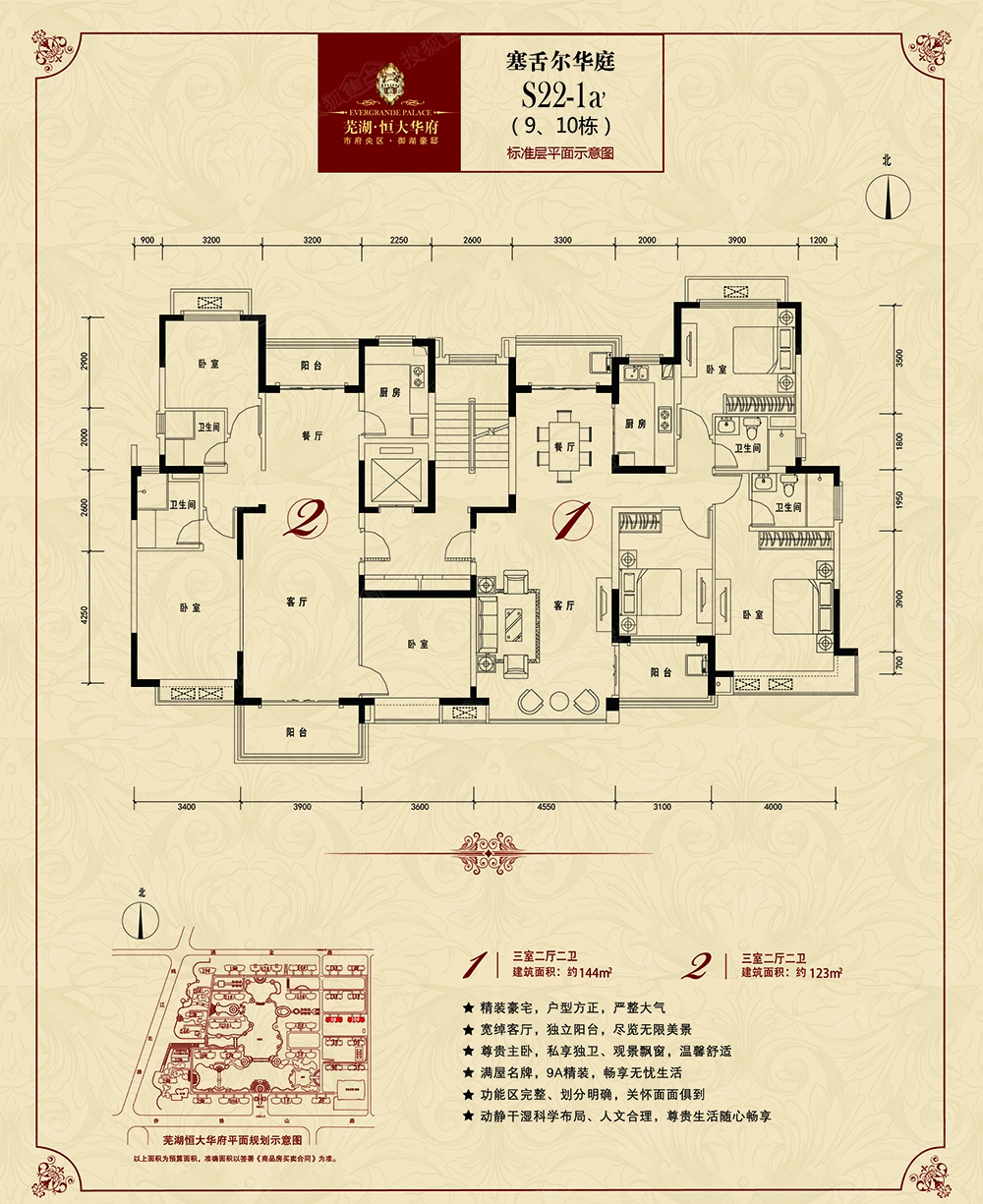 3室2厅2卫-塞舌尔华庭9#、10# 约123㎡