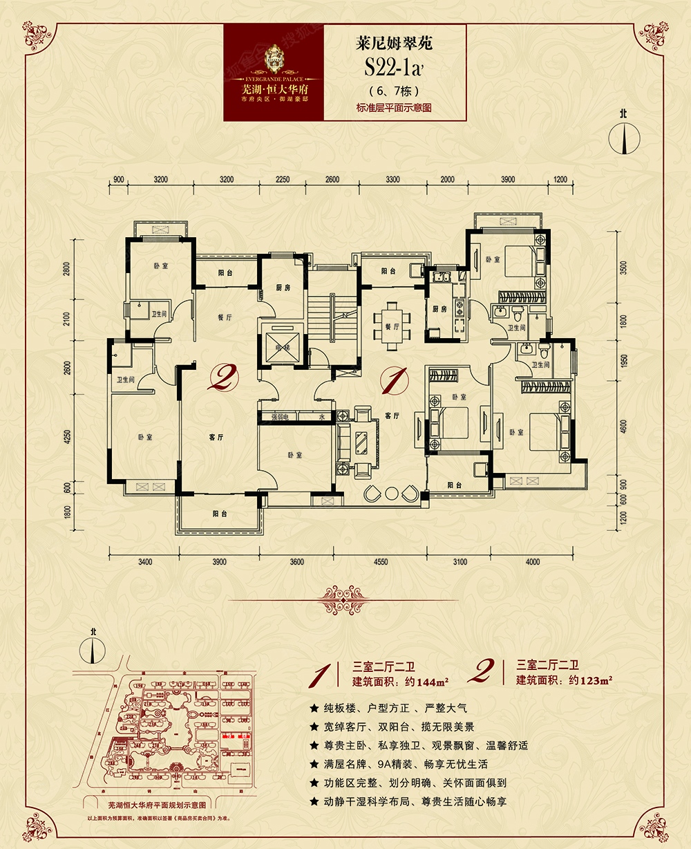 3室2厅2卫-莱尼姆翠苑6#、7# 约123㎡
