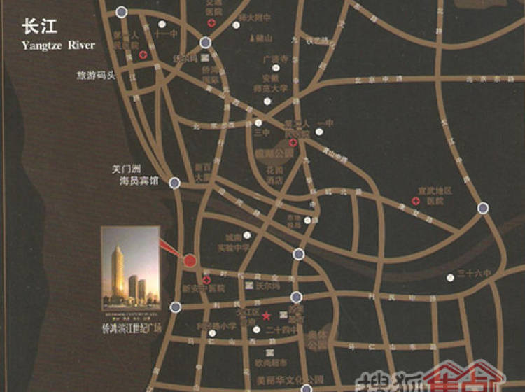金鹰国际广场位于滨江大道以东,箱子拐路以南,中山南路以西,新时代商业街延伸段以北。紧邻长江长、新时代商业街、坐拥一线江景及城市繁华地段。占地面积32401平方米,土地用途为居住、商业、办公、酒店,在满足日照和净空要求的前提下,容积率不作限制。周边有滨江公园、新安中医院、利民路小学、十三中、二十四中、欧尚超市、苏果超市、爱国菜市场以及各大银行等,各类公共设施完善。紧临成熟的新时代商业街、步行街,星级酒店、商铺类别丰富,商业成熟。乘坐8路、44路、37路、14路、106路(夜)、107路(夜)至“爱国村”站下车即到,交通便捷。