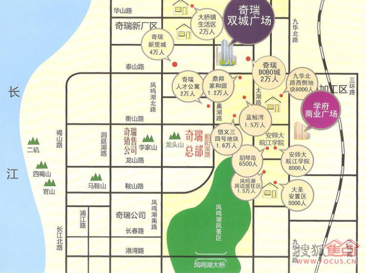 项目将建设商业中心、超市、酒店以及客房。奇瑞双城广场位于奇瑞bobo城与奇瑞新里城之间,未来将是政府规划的大桥生活组团25万人的综合消费中心。