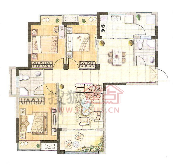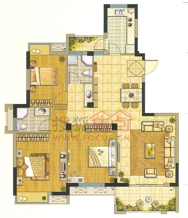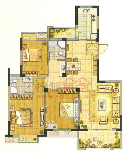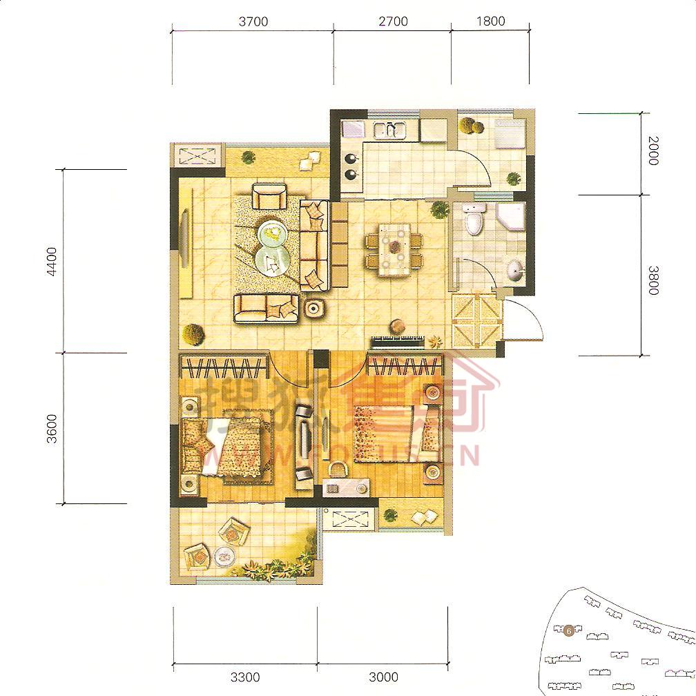 2室2厅1卫-16#/21# 两房两厅一厨一卫 85平 B2