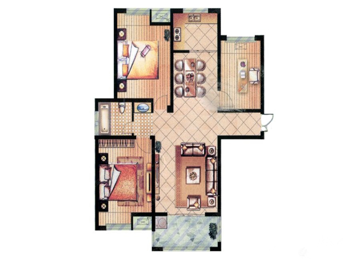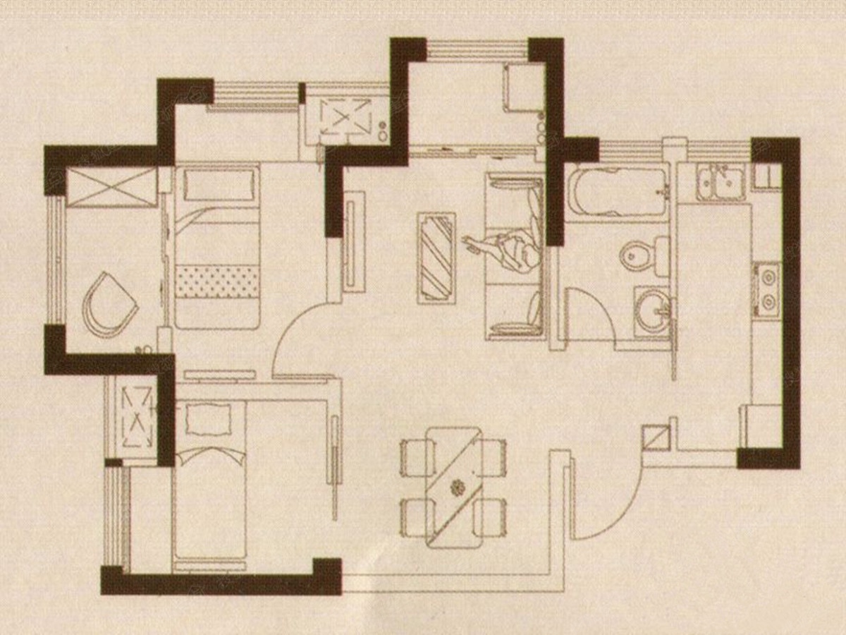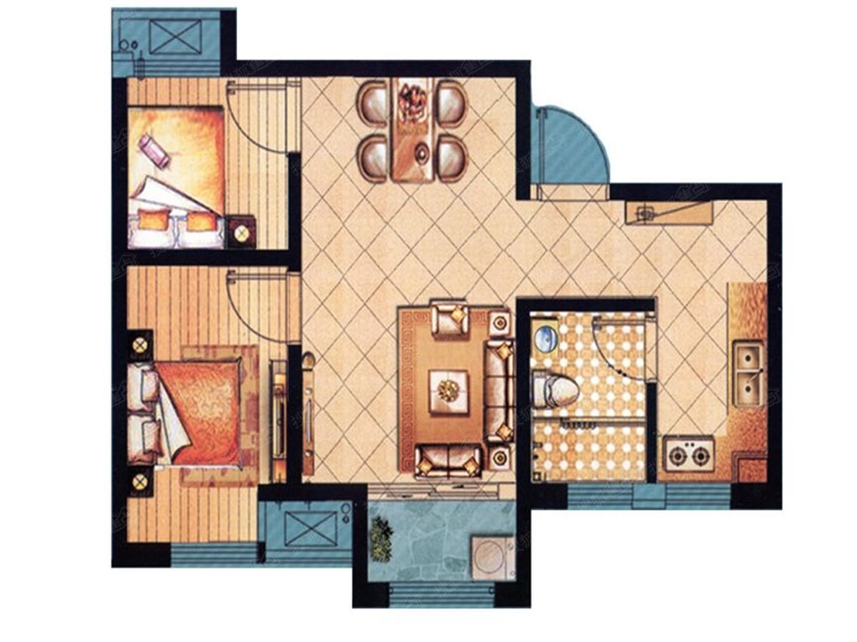 2室2厅1卫-3#X户型