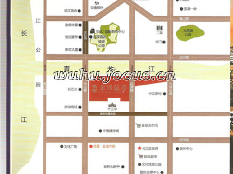伟星金域蓝湾位于中山南路以东、青弋江芜申运河规划线以南、九华南路(中江桥)以西、江岸明珠地块以北,占地面积194501.74平方米,总建筑面积62.2万平米。项目与中山路商业步行街仅一桥之隔,紧临繁华商业区新时代商业街,商业繁华,人潮涌动。周边有弋江区医院、妇幼保健院等健身、医疗配套。学校有城南实验中学、利民路小学、小燕子幼儿园、二十四中等。不远处有花津桥、临江桥、滨江公园以及规划内的三潭公园,风景迤逦,环境优美。联华超市、欧尚超市、苏果超市等大型超市方便社区居民出门购物。乘坐8路、13路、14路、44路、46路、37路至“盆塘沿”站下车即到,交通便捷。