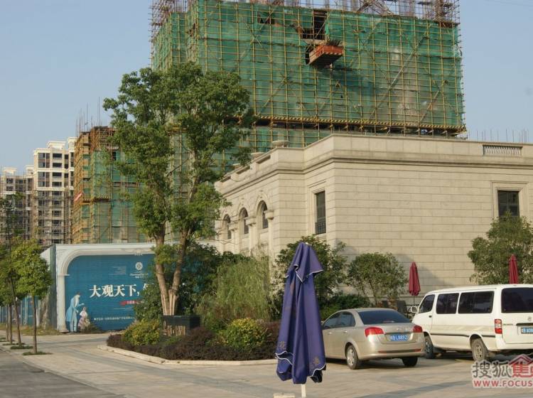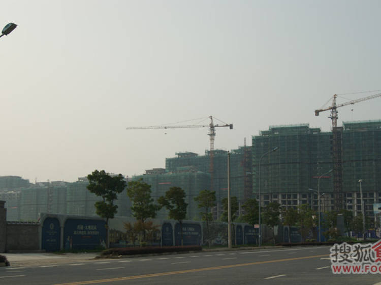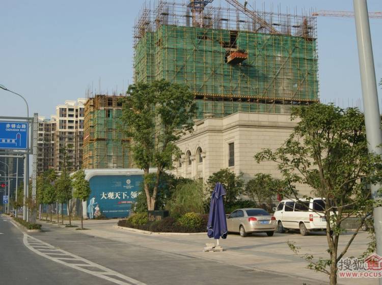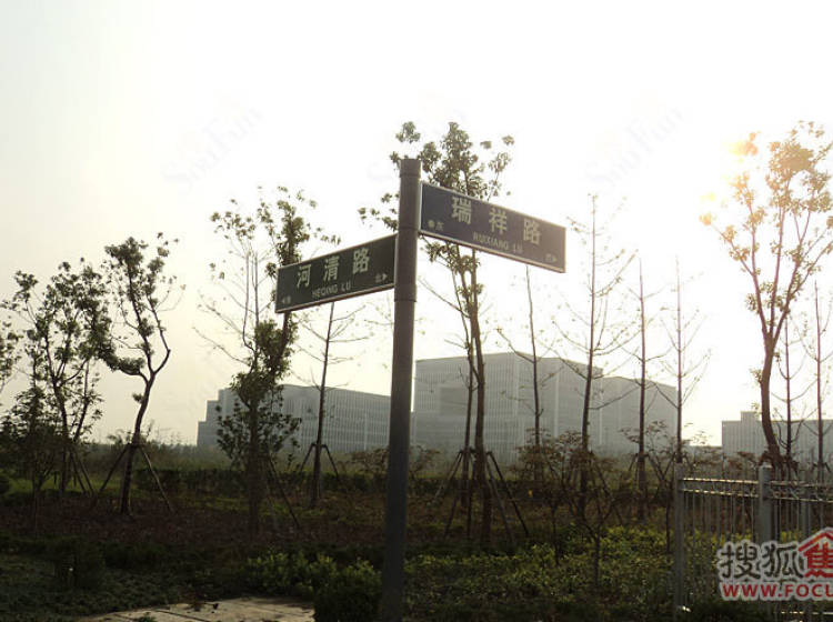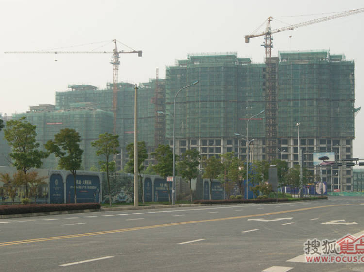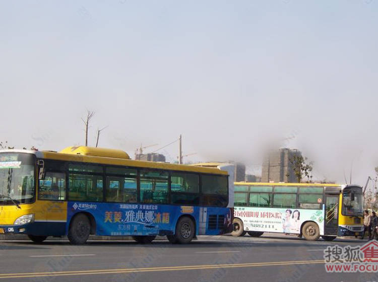 项目现场“政务中心”公交站旁