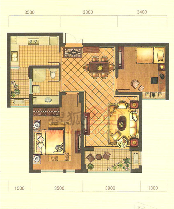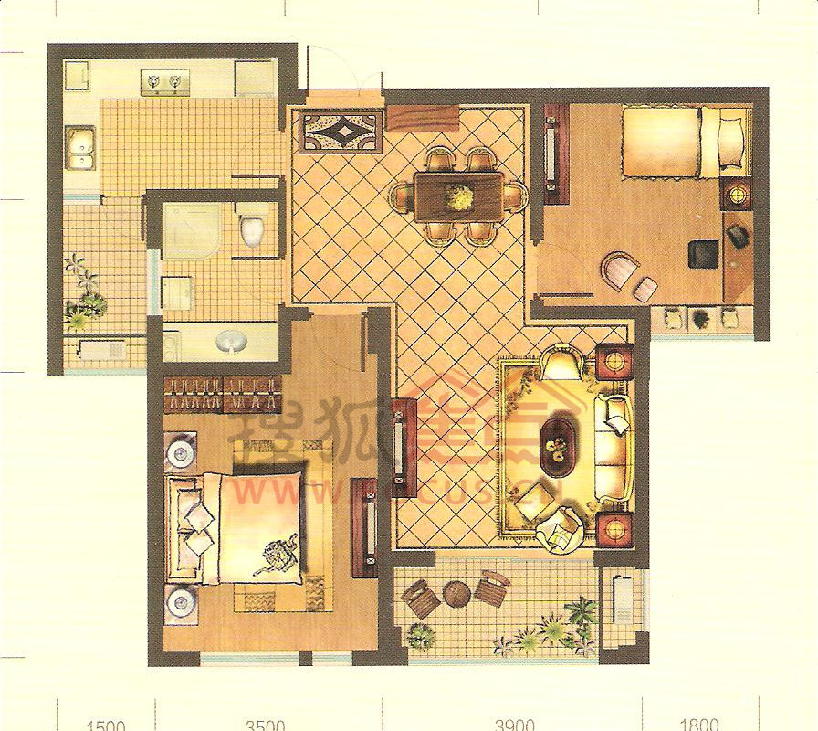 3室2厅1卫-B户型