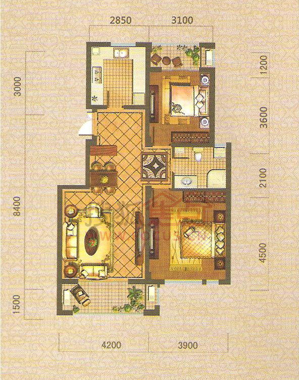 2室2厅1卫-A户型
