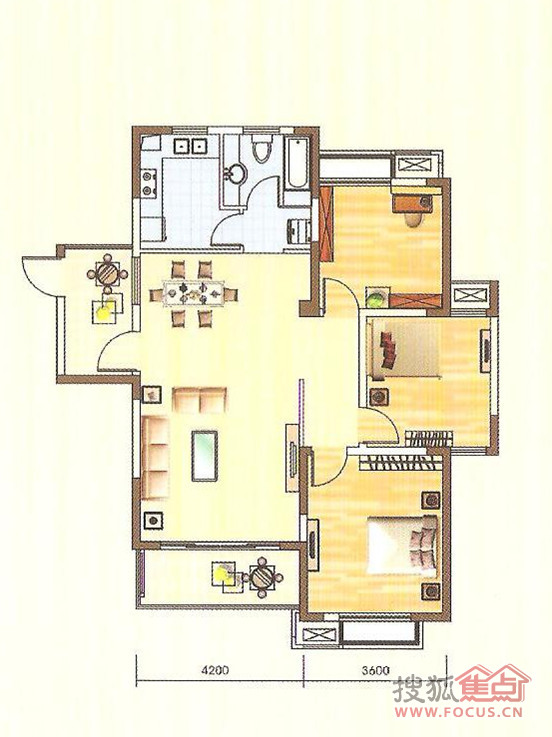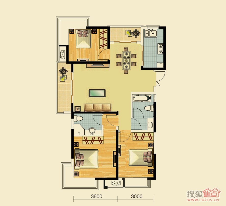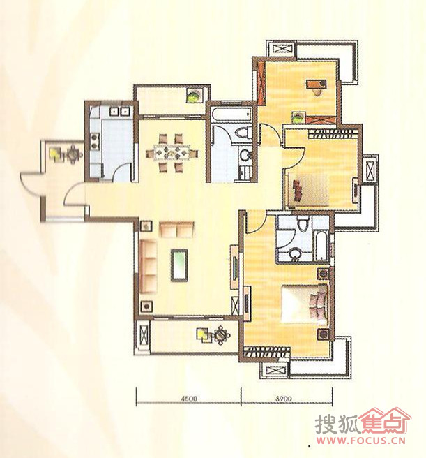 2室2厅2卫-中央城户型图