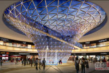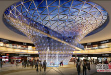 赭山购物公园项目位于银湖南路赭山公园内,占地面积5.6万㎡,总建筑面积12万㎡,采用独特的下沉式、分体式设计理念,以浪漫的艺术表现手法,与赭山公园地形融为一体。这座旷世绝伦饿浪漫巨作,是大芜湖时代来临之际,为江城添加一个对话世界的舞台。银湖南路下沉式广场为项目主入口广场,设置波澜壮阔的水景坡道、动感喷泉、台阶式跌瀑、镜面水亭等依次展开,游人沿坡下行自然进入购物公园内。赭山购物公园位于城市中央商圈,世界六大商业机构首次携手,以先进世界的“时间型”消费模式为设计标准,一种全新的商业模式,打破传统商业目的性消费瓶颈。在这里,上演着全家欢乐总动员,及时不购物也愿意逛一逛,美轮美奂的商业空间布置、自然景观与主题店优质融合,水声和舞台的灯光时刻提醒人们这里更似一座公园,不知不觉中,消磨了一天时光;看似简单的镂空天球解决了商业场所采光与遮雨两大要求,别具一格的阳光水街,曼妙灵动,颠覆传统,不仅点缀了环境,更为商家制造了吸引消费者的特别途径。中心穹顶结构下,一个水上舞台将演绎各种表演,如魔术、杂技、舞台剧等,365天全天候演出将打造“永不落幕的剧场”,一年365天给消费者都带来惊喜,使他们能够习惯性地在这里形成长时间滞留和消费。位于街铺中间的T台中心,将不定期举办各类时尚新品发布会,时尚产品秀以及各类都市舞台剧等精彩节目,形成人流的聚集与回流,保证各个区域内的商铺客流量共享。稍显夸张的地面和别出心裁的立柱使简单的休息空间有着一丝丝不寻常置身其中,让游客自觉成为了都市新贵的代言人。主入口及副入口处设置的直达地下二层的自动扶梯,交通的通达得以有效的解决。