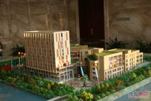 万春新城财富广场由四栋楼组成,1#楼为一栋主楼十一层、三层裙房的高层建筑,在项目靠北侧位置,建筑主楼为快捷酒店以及酒店的配套餐饮、办公等功能,一至二层裙房为铺面式商业以及快捷酒店大堂,厨房以及中餐宴会厅等。2#楼位于项目东南角,为一栋五层建筑,建筑一、二层为超市,超市主入口位于建筑东侧临商业街主入口处,街区中心广场处为次入口,超市外围一圈柱网处理成铺面式商业,更好的扩大了临街商业铺面价值;建筑三至五层为集中的大空间商业,建筑平面规整利于后期的有效分割。3#楼设位于项目西北角,建筑四层,一二层为邻内街和西侧水面的铺面式商业,三、四层为集中的大空间形式,功能分别为三层作为文体活动,四层作为餐饮娱乐功能;4#楼位于3#楼南侧临西侧水面,建筑一至三层中心区为菜场,一、二层菜场周边布置为铺面,三层菜场处靠内街位置为一处小规模办公室,4#楼四层为医疗服务功能。