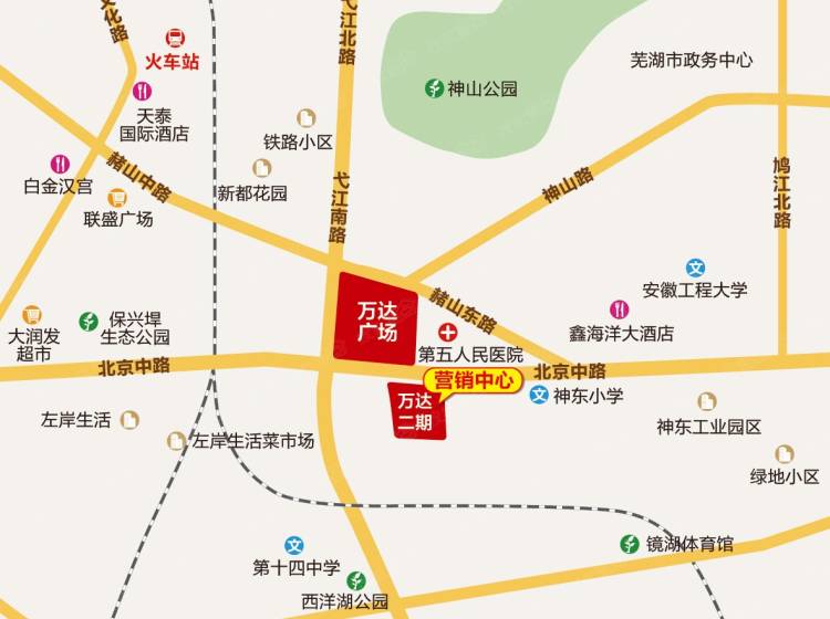 万达中心位于镜湖区与政务区交汇处 ,是芜湖政治与商业繁华聚焦所在,也是芜湖传统高端人群集居地,拥有成熟气息与现代感的商业氛围,轻松构筑企业影响力的有效半径。作为芜湖较大的全能商务集群——万达中心,居城市核心领域,地处城市动脉,以贯穿城市的交通核心、城市商业与政务区域轴心、产业发展交汇中心、城市资源配套核心这四大核心缔造芜湖首屈一指的高效商务典范。