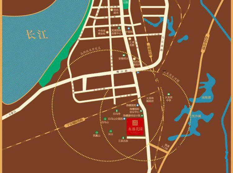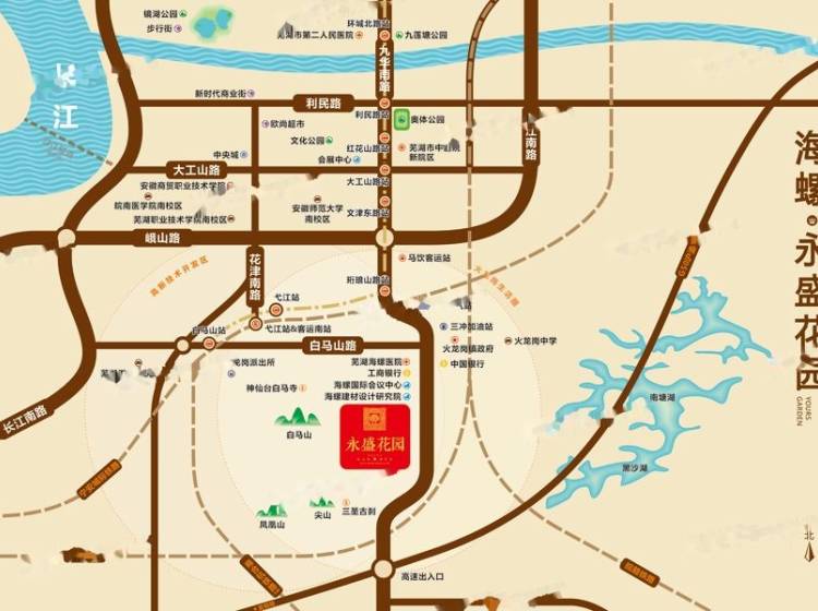 永盛花园位于弋江区火龙岗镇芜南路西侧,海螺国际会议中心往南1000米。占地面积约17.5万平米,项目总建筑面积约39.9万平米(含地下停车场及人防),容积率为1.79,其中高层建筑面积约为24.7万平米、多层约为3.33万平米,规化建设总户数2685户,规化设计40栋住宅,5栋商铺,1栋肉菜市场和社区用房,1栋幼儿园。项目预计分五期开发完成。