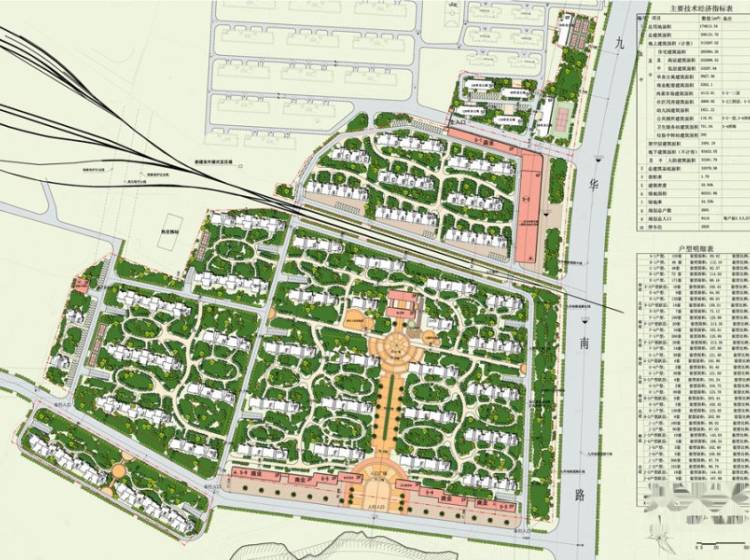 规化设计40栋住宅,5栋商铺,1栋肉菜市场和社区用房,1栋幼儿园