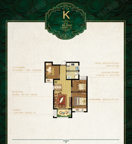 项目规划有15亩中心景观带,生态健康,闲庭信步即有一番滋味。将场地抬高1.2米,形成欧式立体花园景观,多层次坡地景观,灵动自然的原生风貌,减少热辐射,降低能耗。