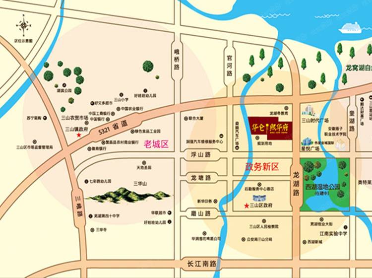 华仑熙华府项目,位于三山时代广场的西侧,距三山区政府仅一步之遥,处于三山的政务新区,地理位置优越。龙湖路是贯穿三山南北的主干道,所以周边交通十分便利,四通八达,S321省道也是市区来往三山的必经之路,无论您是开车还是坐公交都十分方便,公交有48路,51路,206路和特T1路,夜间还有114路,通达性非常好,可到达芜湖市的各个区域。将来随着轻轨和长江二桥的建成与开通,三山的政务新区必然会发展成为三山的核心地段。而我们项目正是处在这个核心区域。