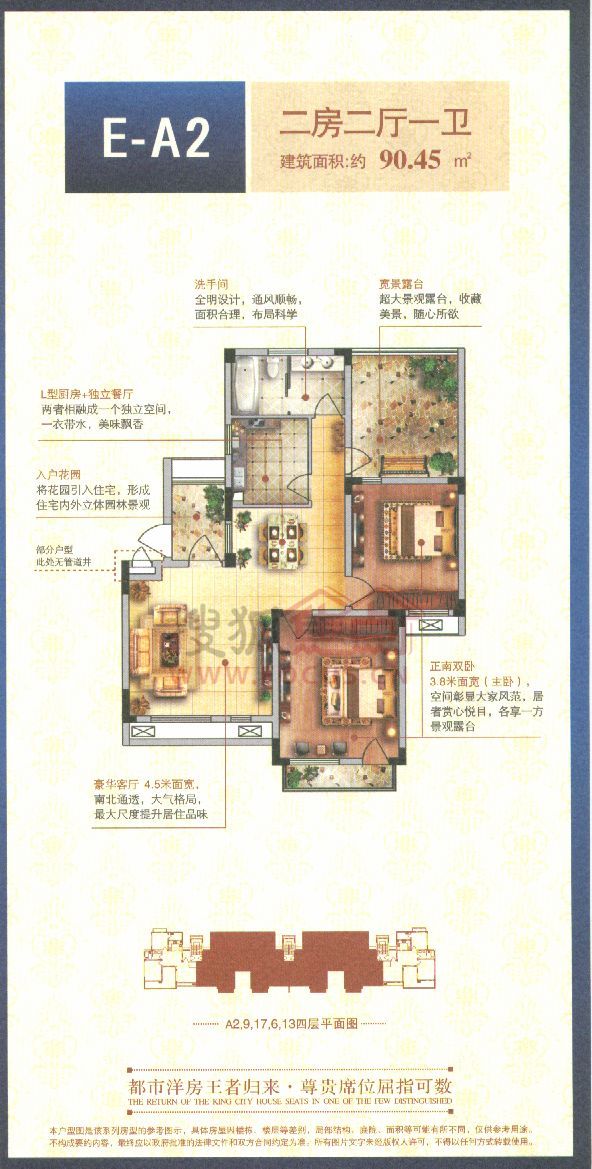 2室2厅1卫-蓉湖山水 90.45平方米 E-A2户型
