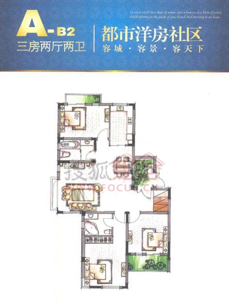 0室-蓉湖山水 3室2厅2卫 A-B2户型