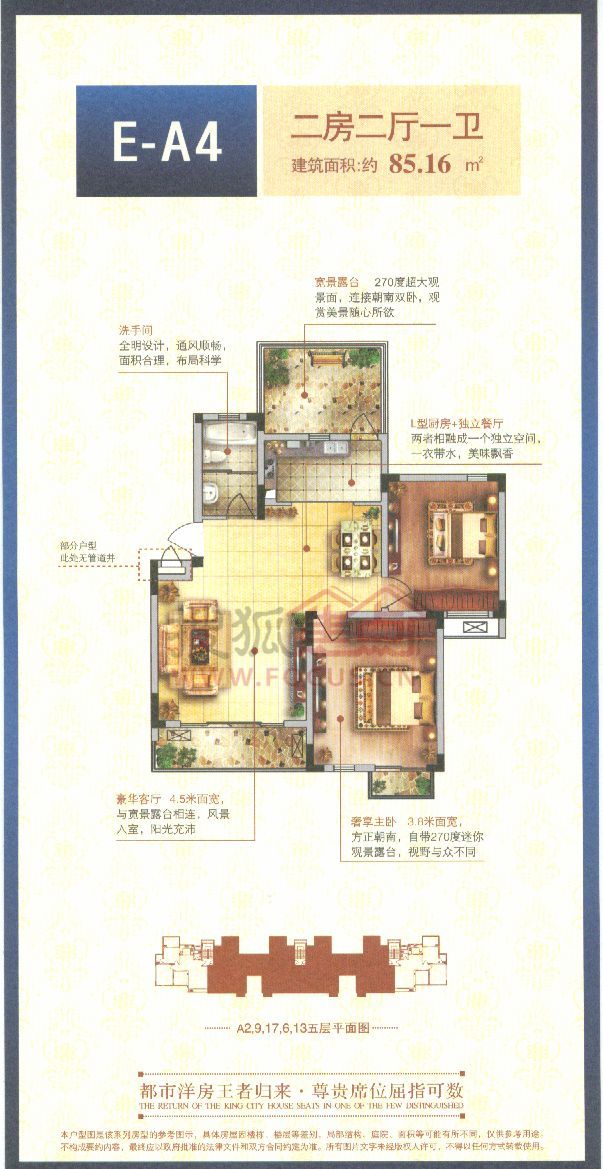 2室2厅1卫-蓉湖山水 85.16平方米 E-A4户型