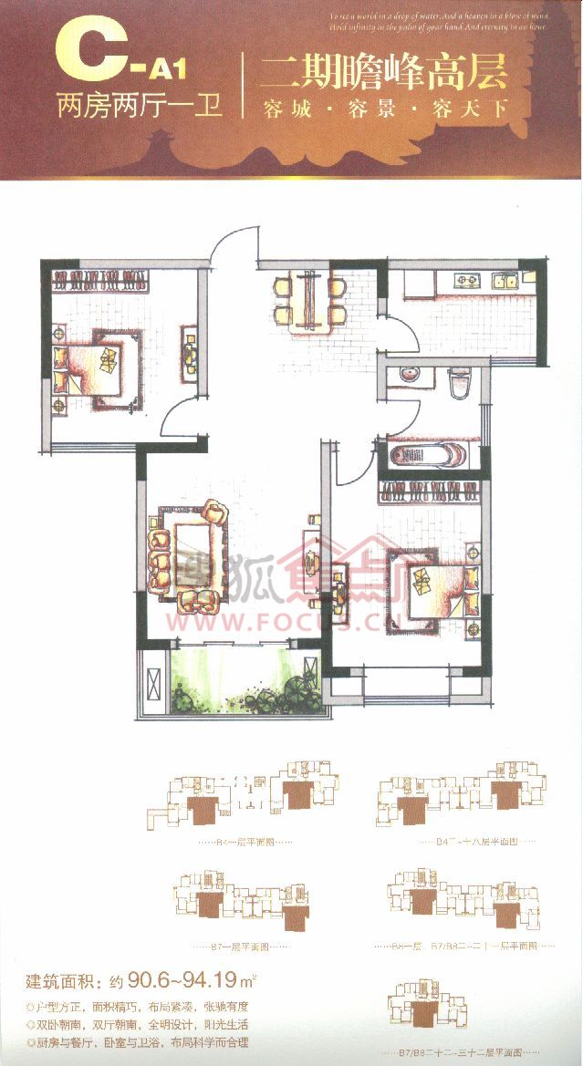 2室2厅1卫-蓉湖山水 90.6-94.19平方米 C-A1户型