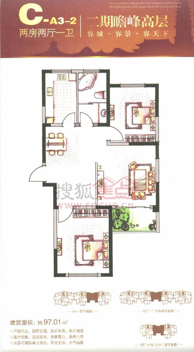 2室2厅1卫-蓉湖山水 97.01平方米 C-A3-2户型