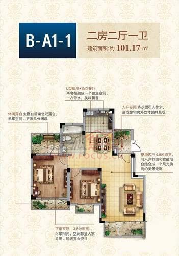 2室2厅1卫-蓉湖山水 二期翠庭洋房户型 电梯洋房 2室2厅1卫 101.17㎡ B-A1-1户型