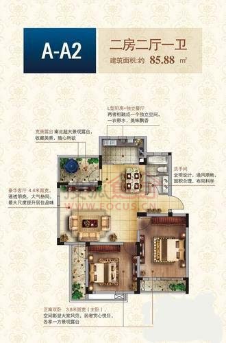 2室2厅1卫-蓉湖山水 二期翠庭洋房户型 情景洋房 2室2厅1卫 85.88㎡ A-A2户型
