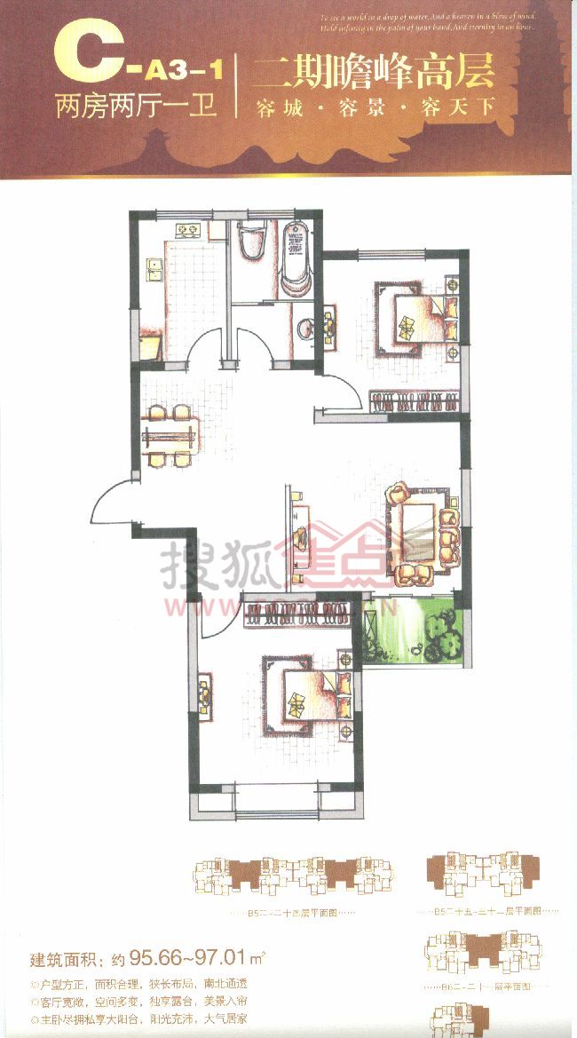 2室2厅1卫-蓉湖山水 95.66-97.01平方米 C-A3-1户型