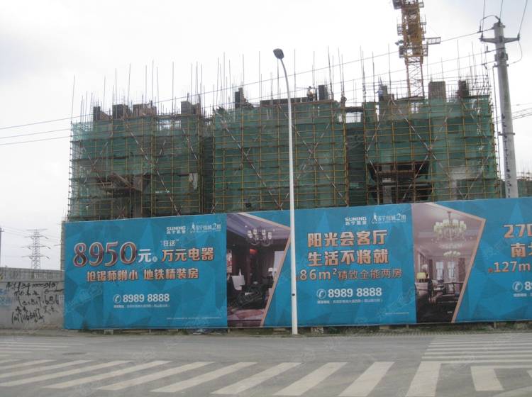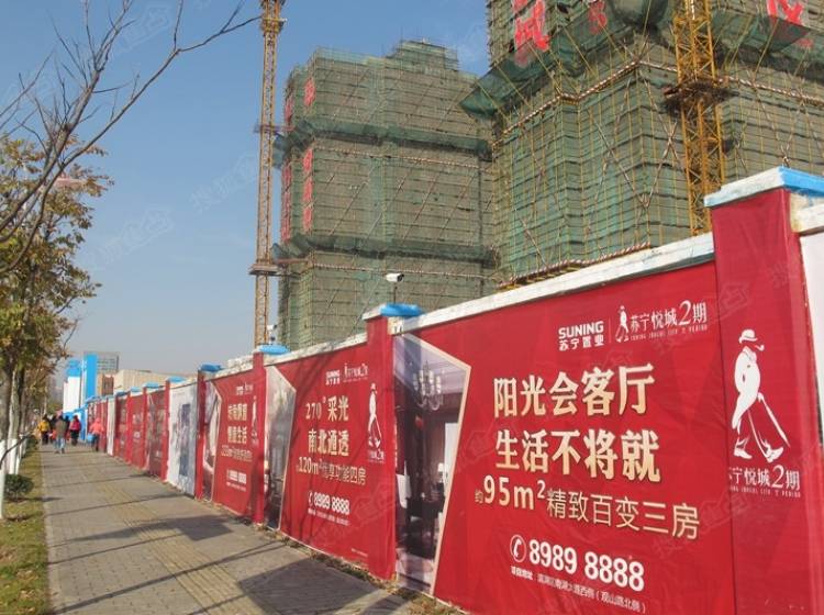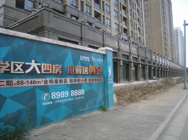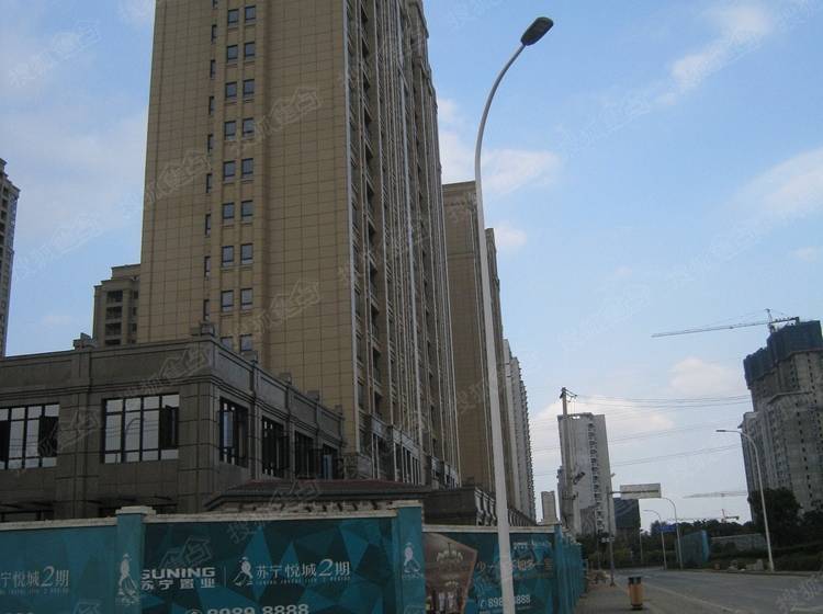 苏宁悦城位于太湖新城板块,北起高浪路,南至观山路,西邻兴梁道,东至南湖大道;紧邻地铁一号线出站口高浪路站及苏锡路站,同时有快5、760、503、23、33、113、130、128等多路公交可以通达,交通便利。项目总占地300余亩,总建面约60万方,共分5期开发,一期8栋楼,共738户,户型面积为88-233㎡。