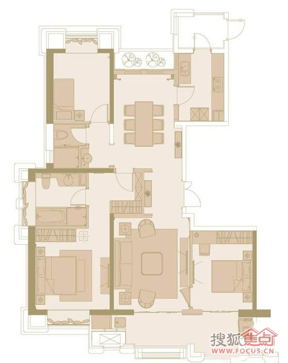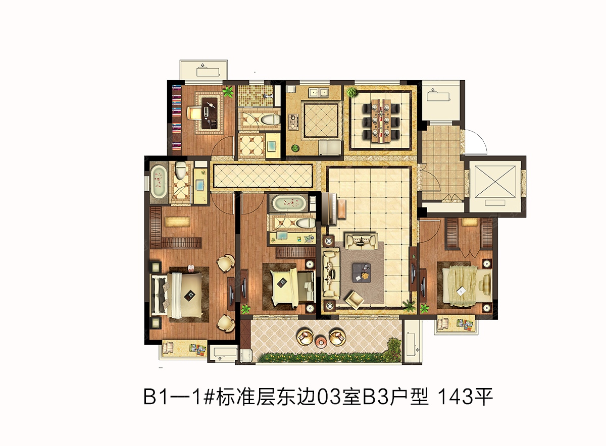 4室2厅3卫-B1-1#标准层东边03室B3户型