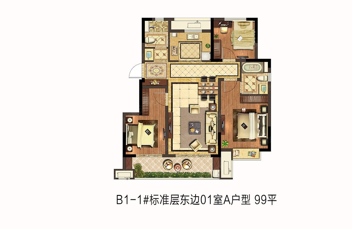 3室2厅2卫-B1-1#标准层东边01室A户型