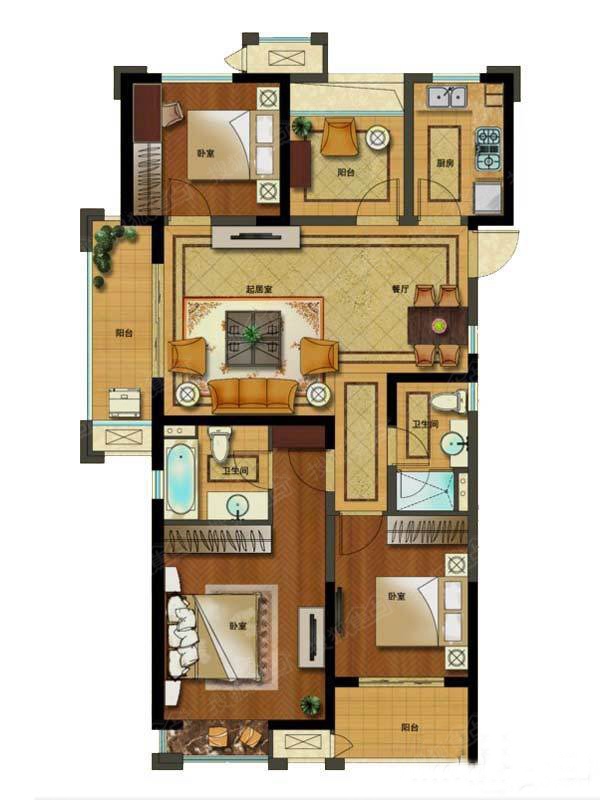 0室-苏宁悦城户型图146平米 B2户型 4室2厅2卫