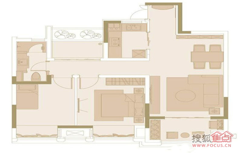 0室-苏宁悦城户型图88平米 B1户型 2室2厅1卫