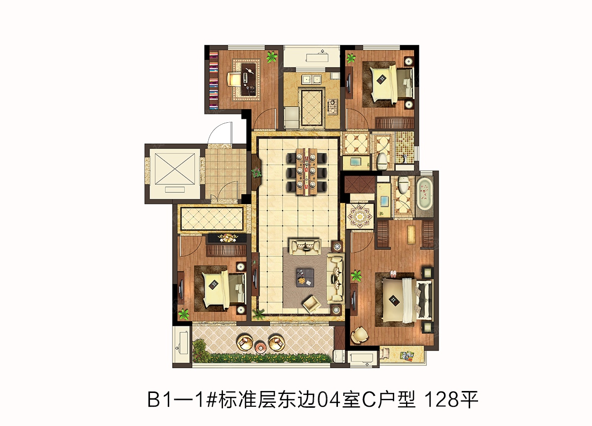 4室2厅2卫-B1-1#标准层东边04室C户型