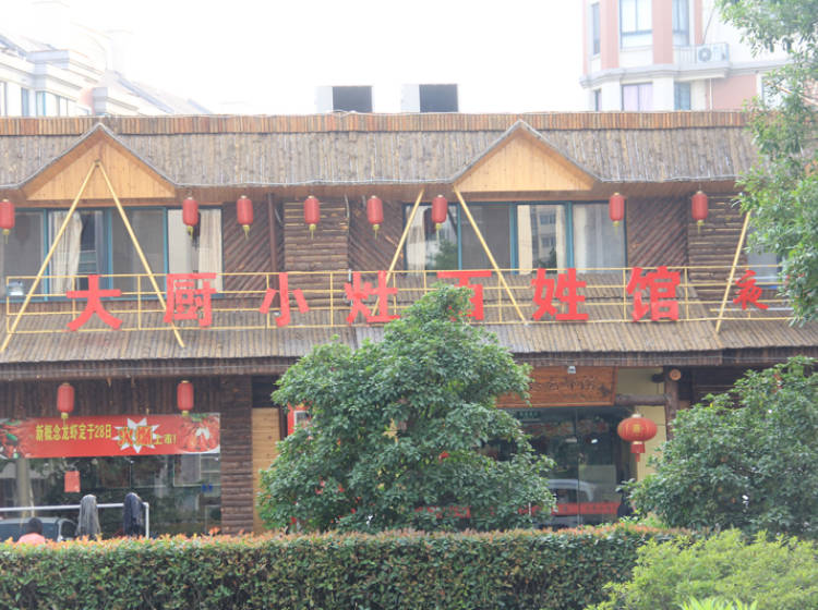 你家厨房、烤鱼馆、一丰园野鱼馆、沙县小吃、鸭肉面馆、兰州拉面:沿会岸路往南,距离协信未来城售楼处400米