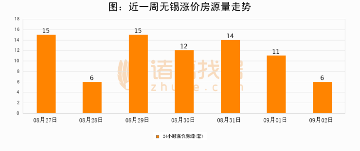 根据诸葛找房数据显示,无锡24小时涨价房源量为6套,较09月01日减少5套,环比下降45.5%。与此同时,涨价房源占比小幅回落,对于购房者来说是一个入市窗口期,购房者可抓住时机入市。