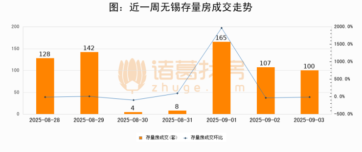 从存量房来看,2025年09月03日无锡存量房单日成交100套,比昨日减少7套,环比下降6.5%。从近一周存量房成交来看,无锡存量房日均成交套数为93套,09月03日单日成交100套,高于近一周平均水平7.5%。