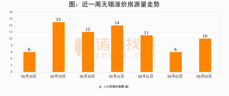 根据诸葛找房数据显示,无锡24小时涨价房源量为10套,较09月02日增加4套,环比上涨66.7%。与此同时,涨价房源占比小幅扩大,业主信心有所提升。