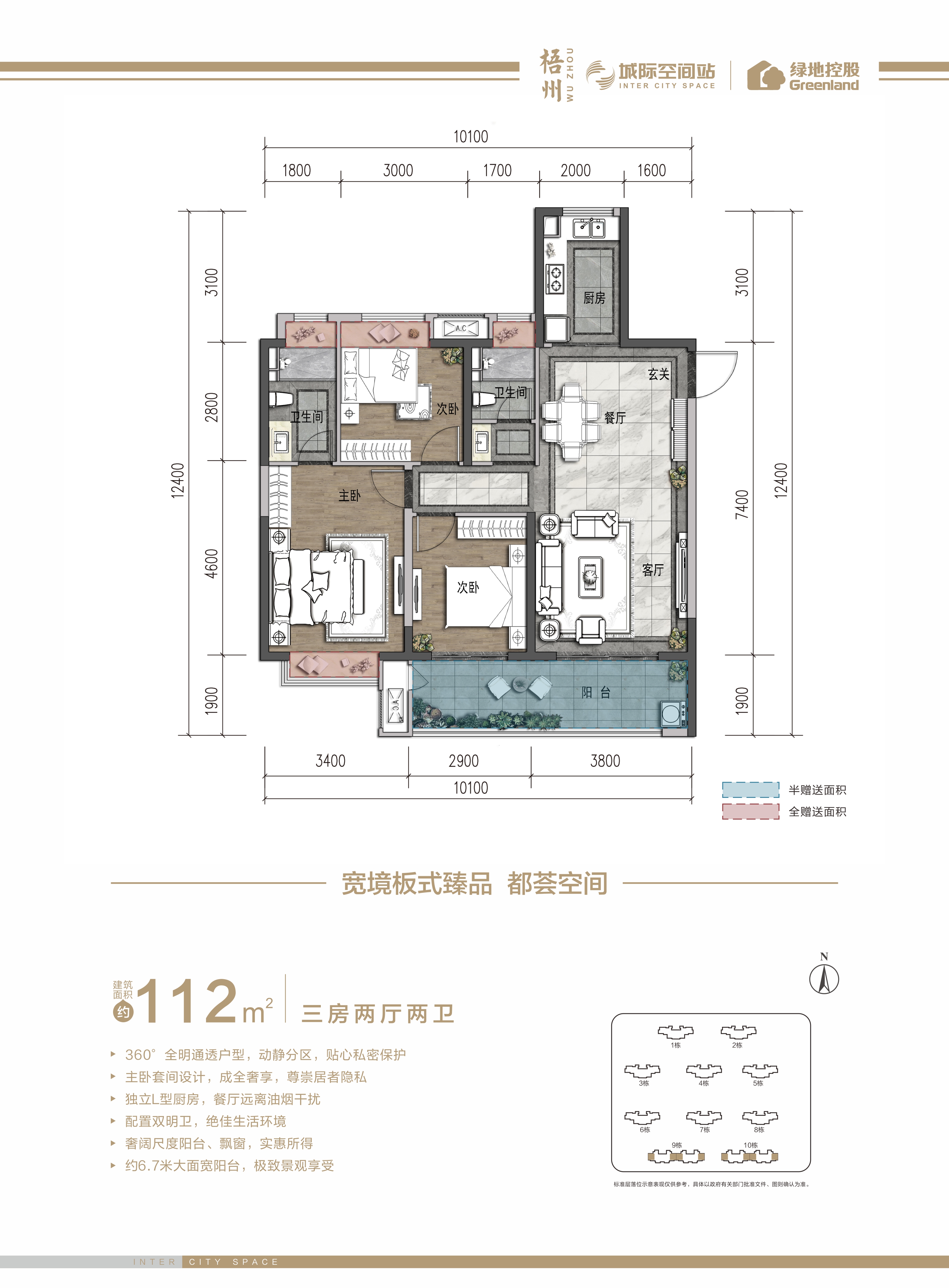 绿地梧州城际空间站依托梧州南站交通枢纽,雄踞苍海新区核心位置,匠心打造建面约270万㎡产融大城,涵盖商业办公、酒店金融、缤纷商业、康养医疗、居住教育等多元业态。首批推出的住宅用地约 75 亩,总建筑面积约 17 万㎡,其中商业及配套服务面积约 4 万㎡。