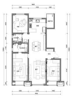 项目结合整体建筑形态及建筑风格,在园区内打造“一园(中央公园)、两带(地块中央、南侧的商业服务带)、三轴(一纵两横的生态景观轴)、四心(园区四大活力节点)、八院(8个景观院落)”的社区园林景观,打造进入小区后步移景异的景观效果。