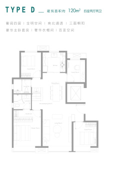 户型建筑面积约95-120㎡,三居到四居